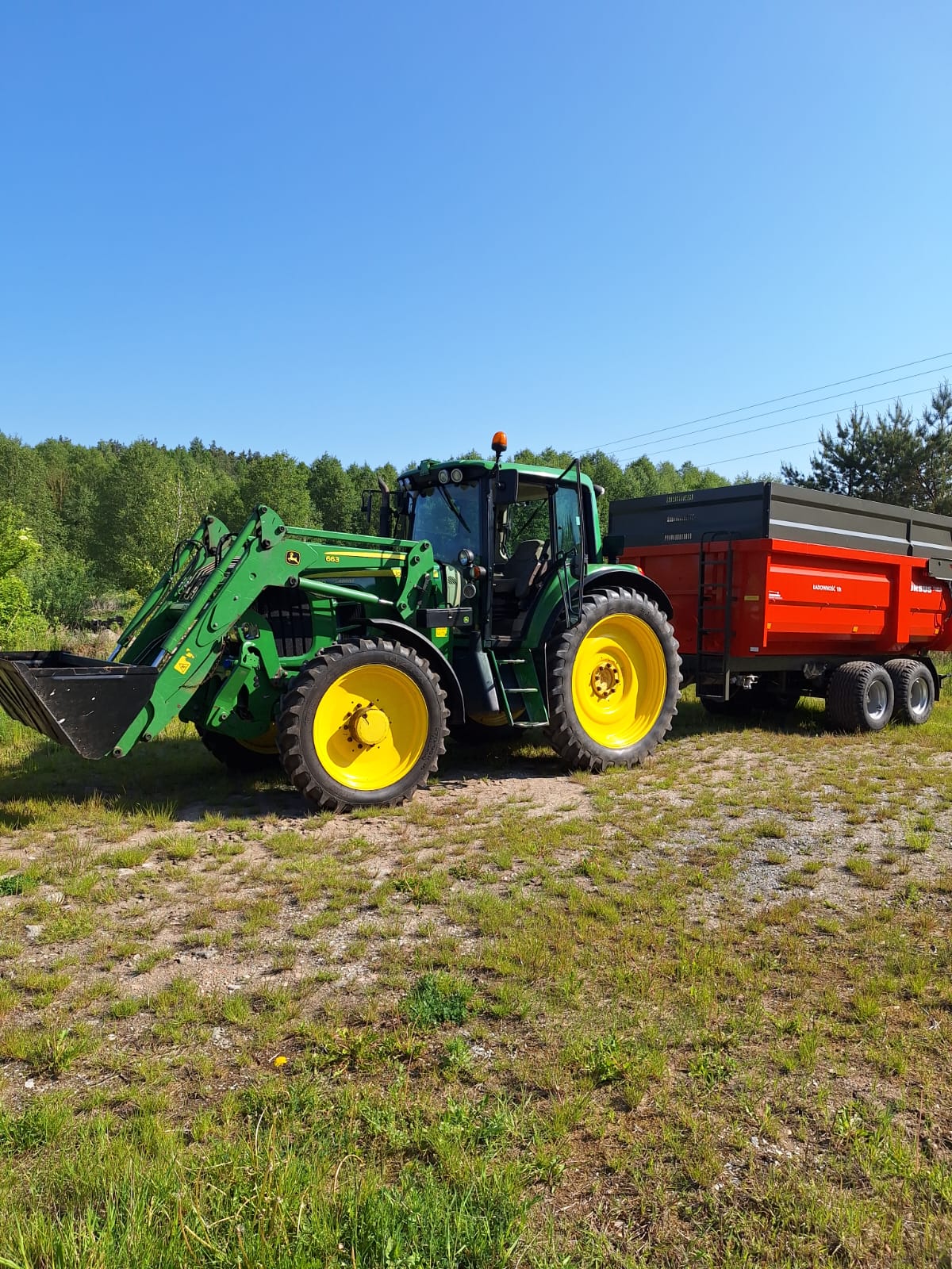 Ciągnik rolniczy z ładowaczem czołowym gotowy do pracy czeka na nowego właściciela